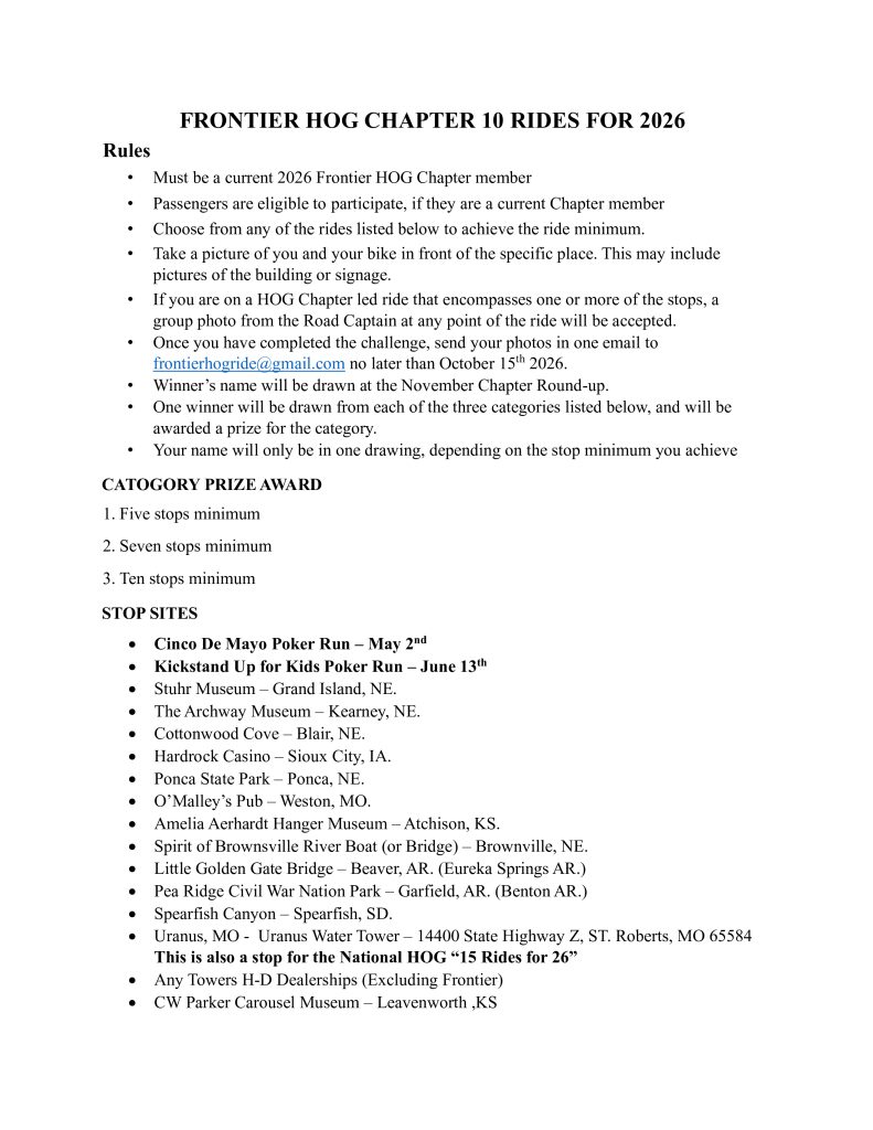 New form uploaded for 2026. This is a fillable form that you can type your information in and print out. Sign and return to drop box at dealership, any membership drive, or HOG meeting. IMPORTANT--MUST BE DATED 1/1/2026 OR AFTER. 2026 FORM
